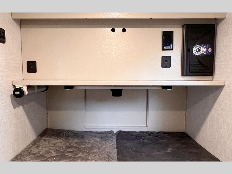 Each unit is built with heavy-gauge, powder-coated aluminum fenders and a welded, aluminum framed main coach-body for a durable trailer made to last. You'll also find Keyed Alike doors, a side-entry doorway, and oversized, dual lockable entry doors with a built-in slider window. Interior comforts include LED lighting, multiple 110V, 12V, and USB outlets, and oversized storage cabinets with netting to keep your things organized.