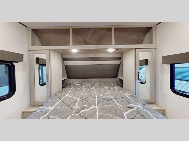 Sleeps 7 Slides 1 Length 22 ft 6 in Ext Width 8 ft Ext Height 10 ft 4 in Interior Color Breezy Beige, Granite Gray Hitch Weight 420 lbs Dry Weight 3846 lbs Cargo Capacity 974 lbs Fresh Water Capacity 43 gals Grey Water Capacity 30 gals Black Water Capacity 30 gals Number Of Bunks 2 Available Beds Murphy Queen Refrigerator Type 12 Volt Refrigerator Size 10 cu ft Cooktop Burners 3 Shower Size 30" x 36" Number of Awnings 1 LP Tank Capacity 20 lbs Water Heater Type On Demand Gas AC BTU 13500 btu Awning Info Power with LED Lights Axle Count 1 Number of LP Tanks 1 Shower Type Standard Electrical Service 30 amp Similar Floorplans