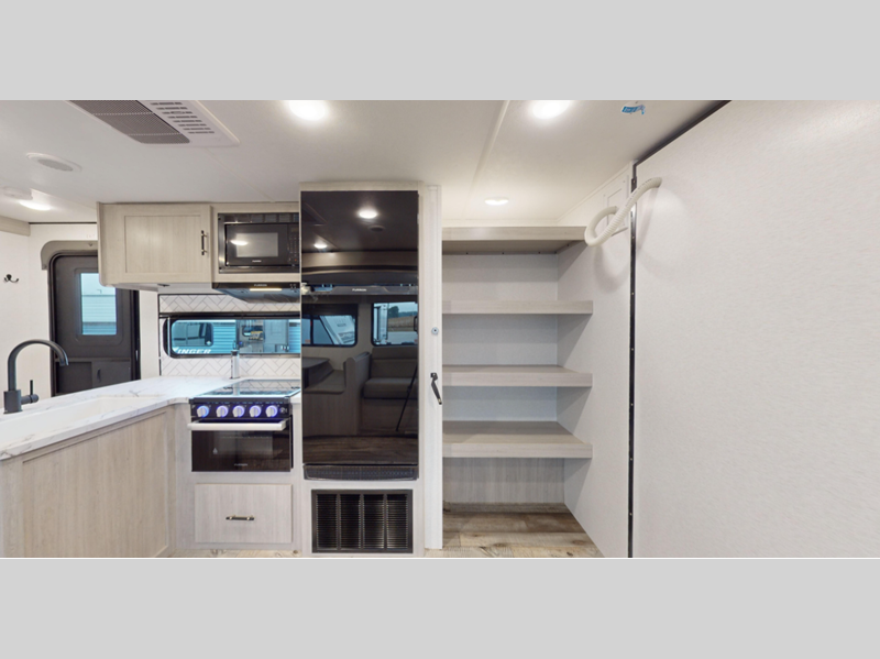 - Pass-through Storage Area w/ Motion LED & Slam Latch Doors