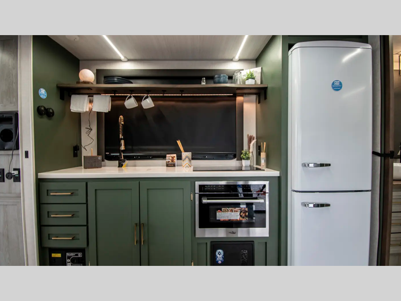 Sleeps 3 Slides 1 Length 32 ft 6 in Ext Width 8 ft 5 in Hitch Weight 815 lbs GVWR 9615 lbs Dry Weight 7410 lbs Cargo Capacity 2205 lbs Fresh Water Capacity 90 gals Grey Water Capacity 60 gals Black Water Capacity 30 gals Available Beds King Refrigerator Type Icebox Refrigerator Size 12 cu ft Cooktop Burners 2 Number of Awnings 1 Axle Count 2 Washer/Dryer Available Yes Shower Type Standard Similar Floorplans