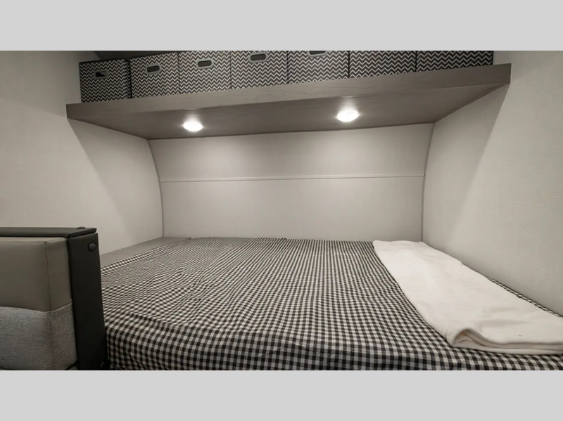 Sleeps 5 Length 20 ft 5 in Ext Width 7 ft Ext Height 10 ft Hitch Weight 340 lbs GVWR 3860 lbs Dry Weight 3034 lbs Cargo Capacity 826 lbs Fresh Water Capacity 27 gals Grey Water Capacity 27 gals Black Water Capacity 27 gals Number Of Bunks 2 Available Beds Queen Refrigerator Type 12V Refrigerator Size 10 cu ft Shower Size 24" x 36" Number of Awnings 1 Water Heater Type Tankless AC BTU 13500 btu Awning Info 10' Power w/LED Light Strip & Adj. Legs Axle Count 1 Shower Type Standard Similar Floorplans
